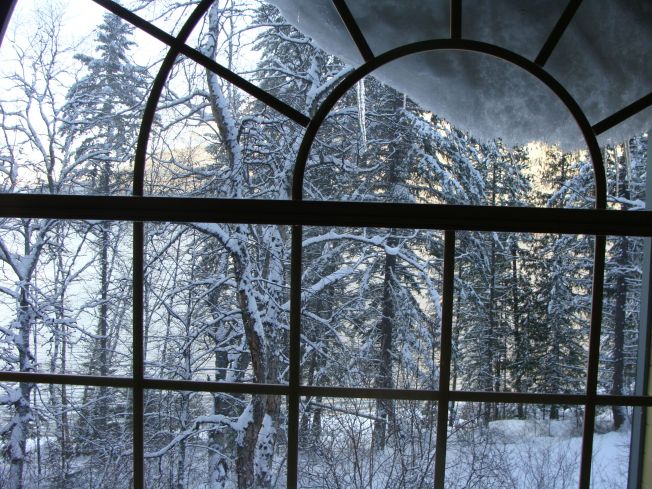 The past two weeks when the snow falls, it appears to have come in foot high dumps. As well as a lot of shovelling, this past weekend’s snow event made Winna stay not only for Friday night’s Shrimp Creme Brulee dinner, but nestle in for a full weekend sleepover. Apart from great girlfriend time sipping steaming mugs of coffee as the trees drooped with fresh winter cloaks, we talked and cooked and ate, and shovelled a LOT of snow. We also snowshoed along the serene shores of Slocan Lake in a monochromatic impressionist landscape.